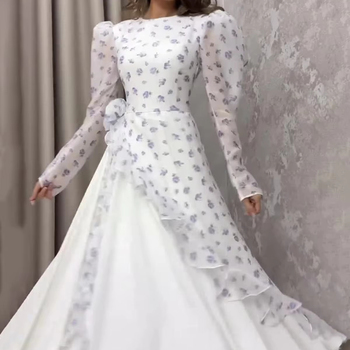 JM-Vestido largo elegante y fresco de manga larga con patrón floral, vestido de mujer al por mayor