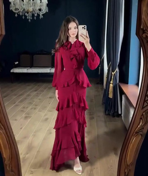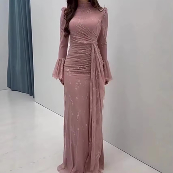 JM-venta al por mayor elegante vestido largo de manga larga, suave y hermoso vestido formal, vestido de mujer